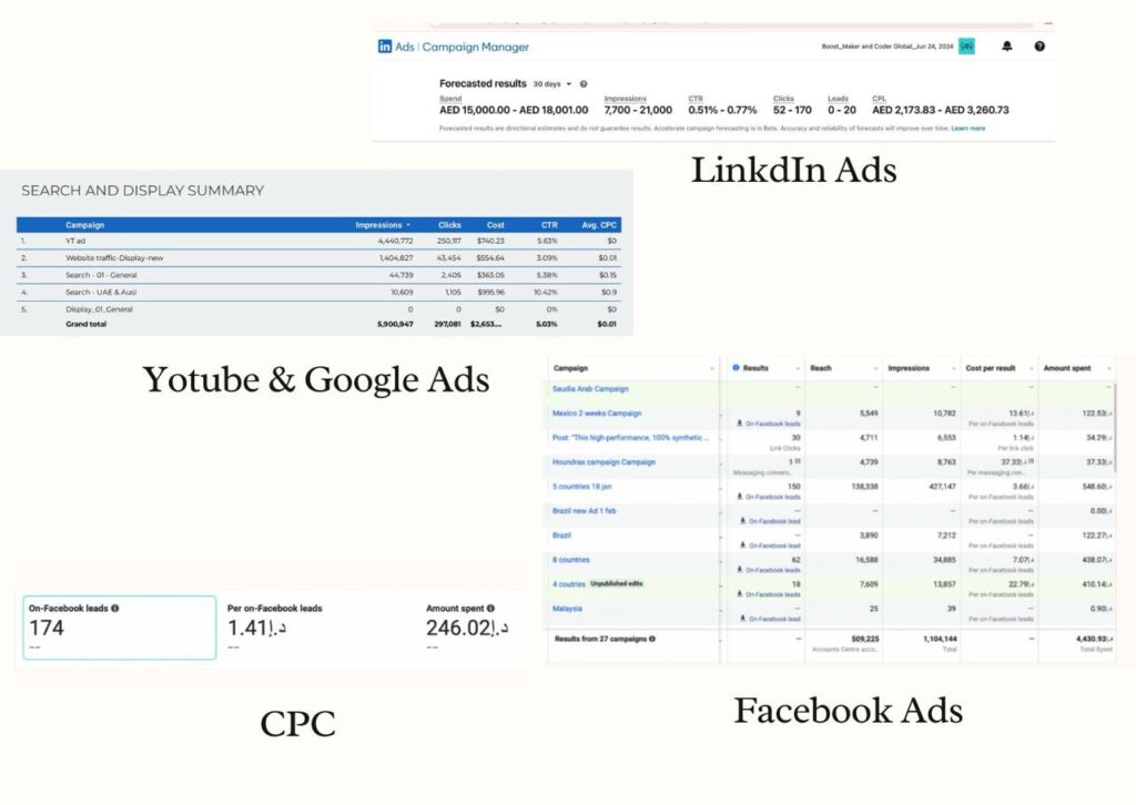 In the competitive Dubai market, results are everything. That’s why our performance marketing solutions are built on a foundation of measurable success. Whether it’s through expertly managed Google Ads campaigns, strategic PPC advertising, or intelligent social media retargeting, we specialize in connecting Dubai businesses with their ideal customers. Our goal is clear: to generate highly qualified leads and maximize your return on investment (ROI). Take a look at our showcased performance marketing case studies to see firsthand how our Dubai digital marketing agency transforms clicks into conversions and strategies into substantial business growth.